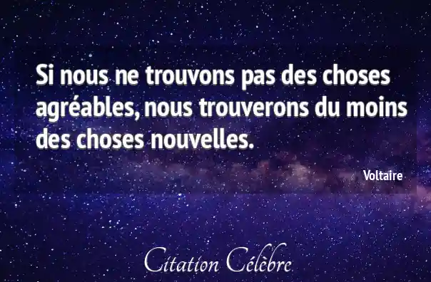 Si nous ne trouvons pas des choses agréables, nous trouverons du moins des choses nouvelles.