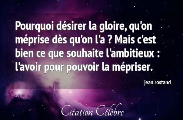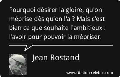 Pourquoi désirer la gloire, qu'on méprise dès qu'on l'a ? Mais c'est bien ce que souhaite l'ambitieux : l'avoir pour pouvoir la mépriser.