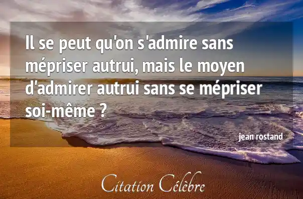 Il se peut qu'on s'admire sans mépriser autrui, mais le moyen d'admirer autrui sans se mépriser soi-même ?