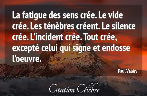 La fatigue des sens crée. Le vide crée. Les ténèbres créent. Le silence crée. L'incident crée. Tout crée, excepté celui qui signe et endosse l'oeuvre.