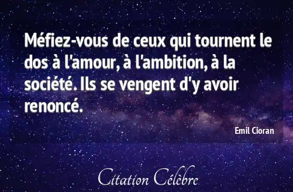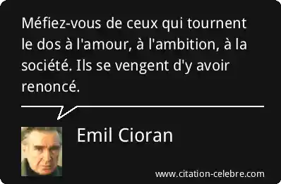 Méfiez-vous de ceux qui tournent le dos à l'amour, à l'ambition, à la société. Ils se vengent d'y avoir renoncé.