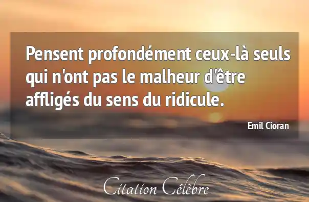 Pensent profondément ceux-là seuls qui n'ont pas le malheur d'être affligés du sens du ridicule.