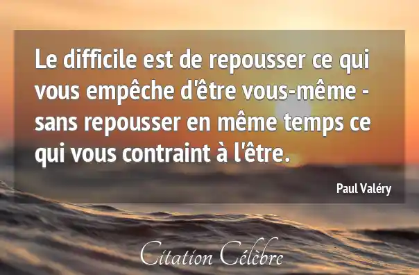 Le difficile est de repousser ce qui vous empêche d'être vous-même - sans repousser en même temps ce qui vous contraint à l'être.