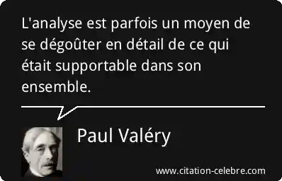 L'analyse est parfois un moyen de se dégoûter en détail de ce qui était supportable dans son ensemble.