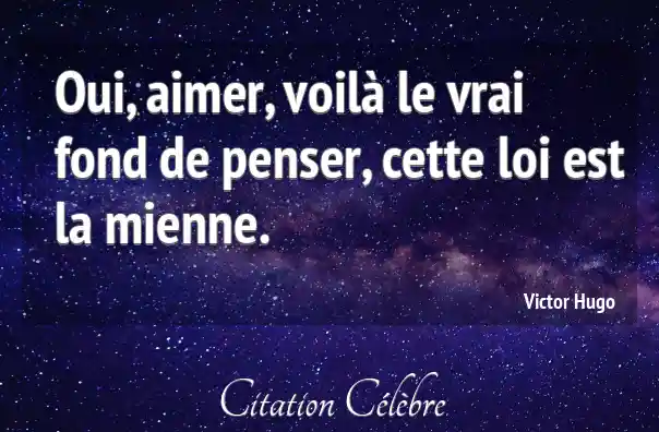 Oui, aimer, voilà le vrai fond de penser, cette loi est la mienne.
