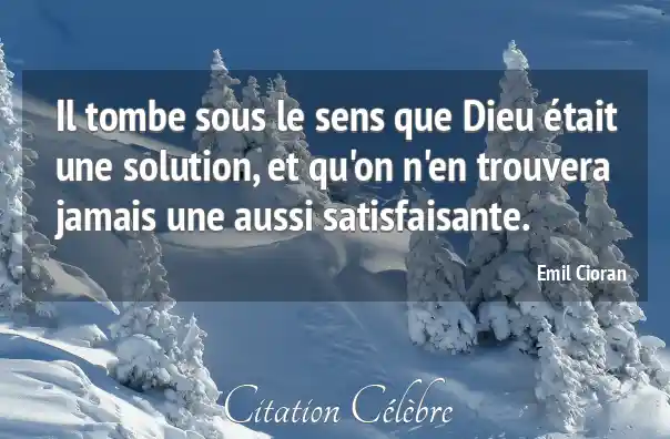 Il tombe sous le sens que Dieu était une solution, et qu'on n'en trouvera jamais une aussi satisfaisante.