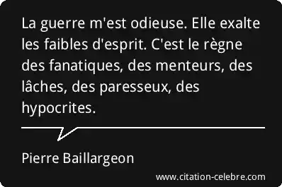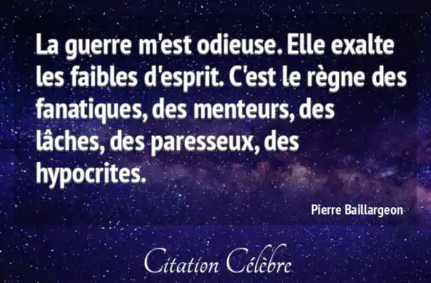 La guerre m'est odieuse. Elle exalte les faibles d'esprit. C'est le règne des fanatiques, des menteurs, des lâches, des paresseux, des hypocrites.