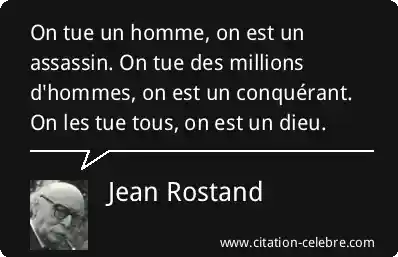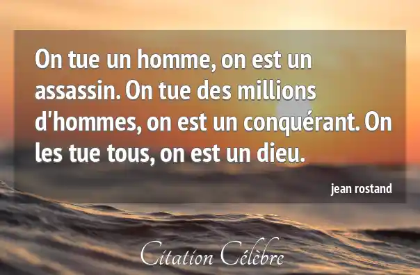 On tue un homme, on est un assassin. On tue des millions d'hommes, on est un conquérant. On les tue tous, on est un dieu.