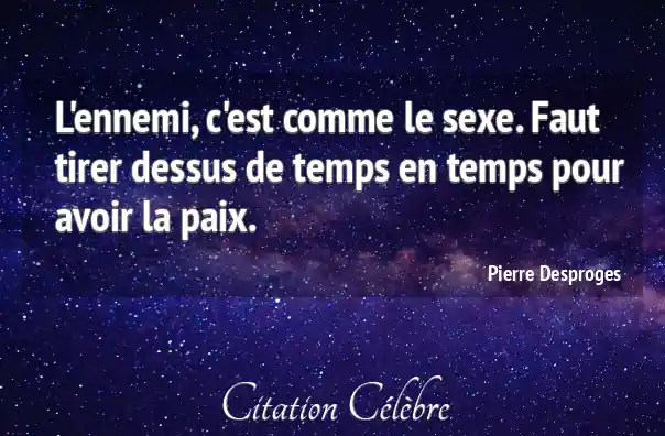 L'ennemi, c'est comme le sexe. Faut tirer dessus de temps en temps pour avoir la paix.