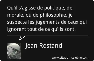 Qu'il s'agisse de politique, de morale, ou de philosophie, je suspecte les jugements de ceux qui ignorent tout de ce qu'ils sont.