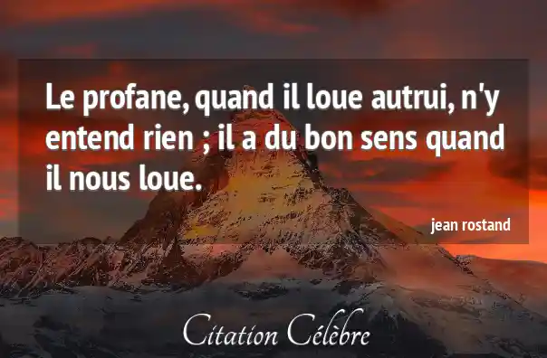 Le profane, quand il loue autrui, n'y entend rien ; il a du bon sens quand il nous loue.