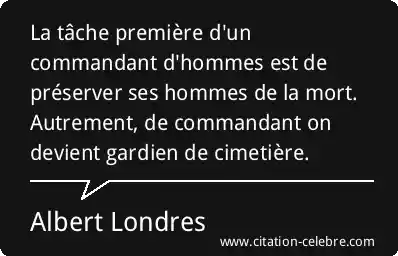 La tâche première d'un commandant d'hommes est de préserver ses hommes de la mort. Autrement, de commandant on devient gardien de cimetière.