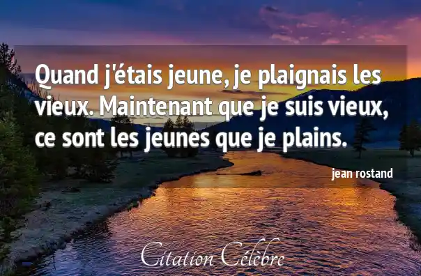 Quand j'étais jeune, je plaignais les vieux. Maintenant que je suis vieux, ce sont les jeunes que je plains.
