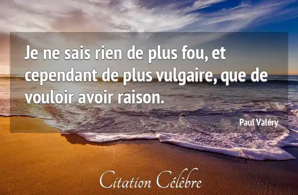 Je ne sais rien de plus fou, et cependant de plus vulgaire, que de vouloir avoir raison.