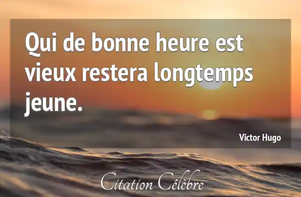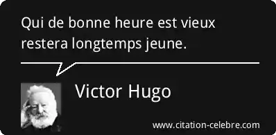 Citation Victor Hugo longtemps : Qui de bonne heure est vieux restera longtemps jeune....