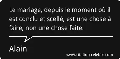 Le mariage, depuis le moment où il est conclu et scellé, est une chose à faire, non une chose faite.