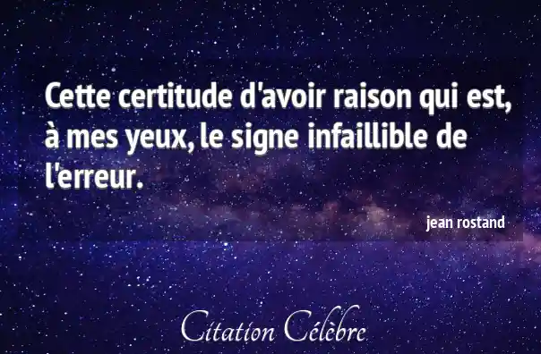 Cette certitude d'avoir raison qui est, à mes yeux, le signe infaillible de l'erreur.