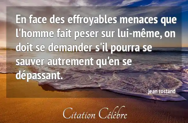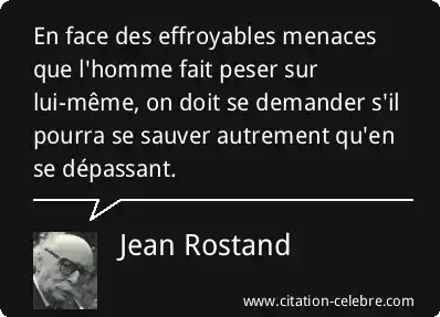 En face des effroyables menaces que l'homme fait peser sur lui-même, on doit se demander s'il pourra se sauver autrement qu'en se dépassant.