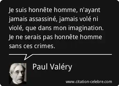 Je suis honnête homme, n'ayant jamais assassiné, jamais volé ni violé, que dans mon imagination. Je ne serais pas honnête homme sans ces crimes.