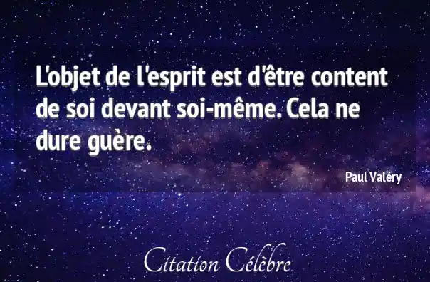 L'objet de l'esprit est d'être content de soi devant soi-même. Cela ne dure guère.