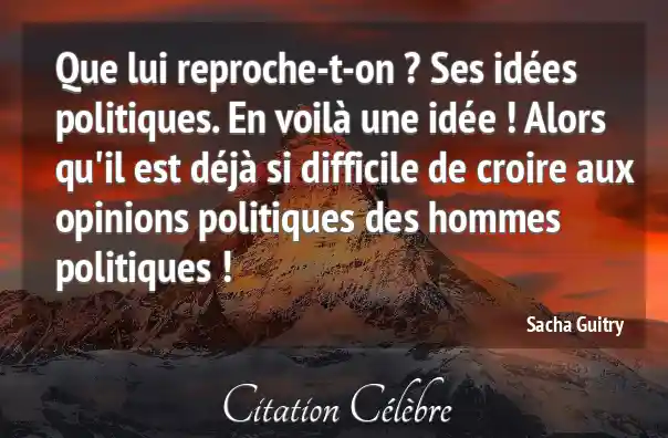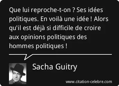 Que lui reproche-t-on ? Ses idées politiques. En voilà une idée ! Alors qu'il est déjà si difficile de croire aux opinions politiques des hommes politiques !