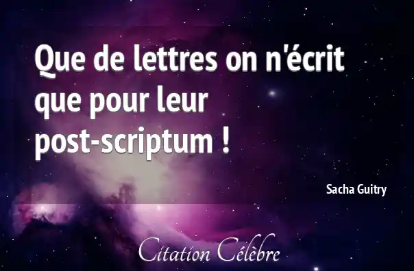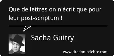Citation Sacha Guitry ecrit : Que de lettres on n'écrit que pour leur post-scriptum !...
