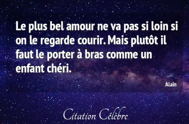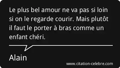 Le plus bel amour ne va pas si loin si on le regarde courir. Mais plutôt il faut le porter à bras comme un enfant chéri.