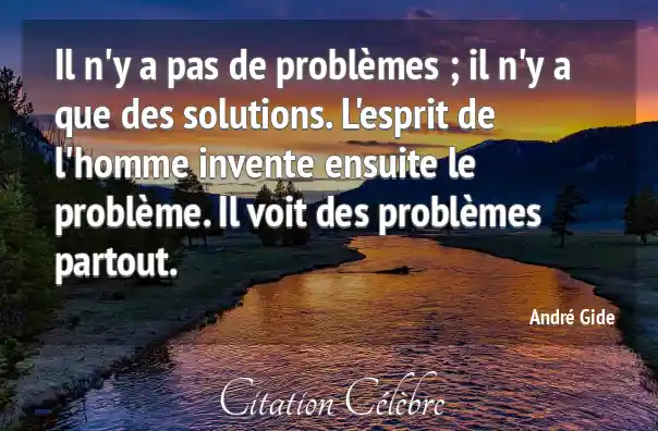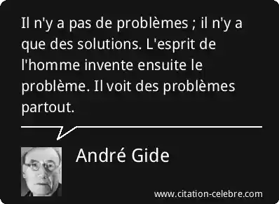 Cette célèbre formule d’André Gide exprime une vision radicalement optimiste et constructiviste de la réalité. Elle suggère que les difficultés que nous rencontrons ne sont, par essence, pas des problèmes, mais de simples situations nécessitant une solution. Le "problème" n'est donc pas une donnée objective du monde, mais une construction mentale, une manière de percevoir et d'étiqueter une difficulté par l'esprit humain.