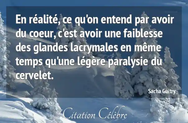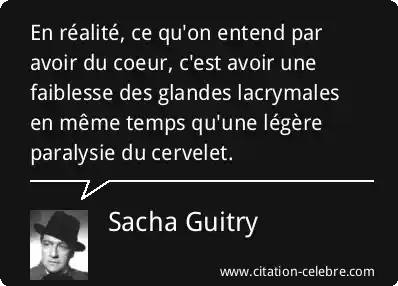 En réalité, ce qu'on entend par avoir du coeur, c'est avoir une faiblesse des glandes lacrymales en même temps qu'une légère paralysie du cervelet.