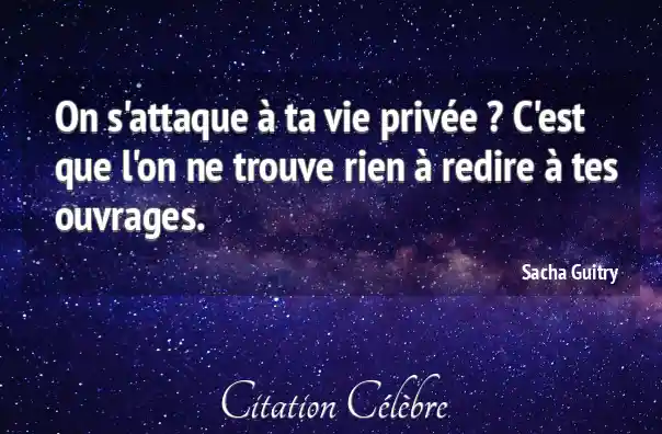 On s'attaque à ta vie privée ? C'est que l'on ne trouve rien à redire à tes ouvrages.