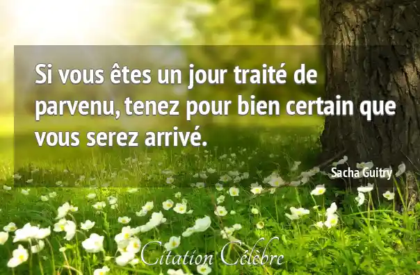 Si vous êtes un jour traité de parvenu, tenez pour bien certain que vous serez arrivé.