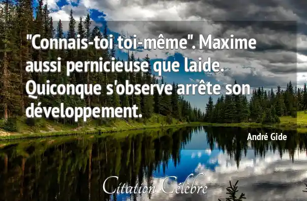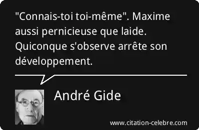 "Connais-toi toi-même". Maxime aussi pernicieuse que laide. Quiconque s'observe arrête son développement.