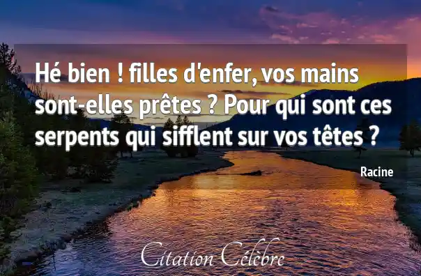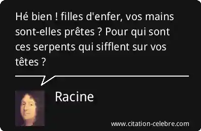 Hé bien ! filles d'enfer, vos mains sont-elles prêtes ? Pour qui sont ces serpents qui sifflent sur vos têtes ?