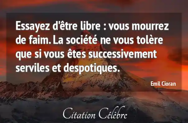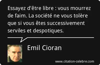 Essayez d'être libre : vous mourrez de faim. La société ne vous tolère que si vous êtes successivement serviles et despotiques.