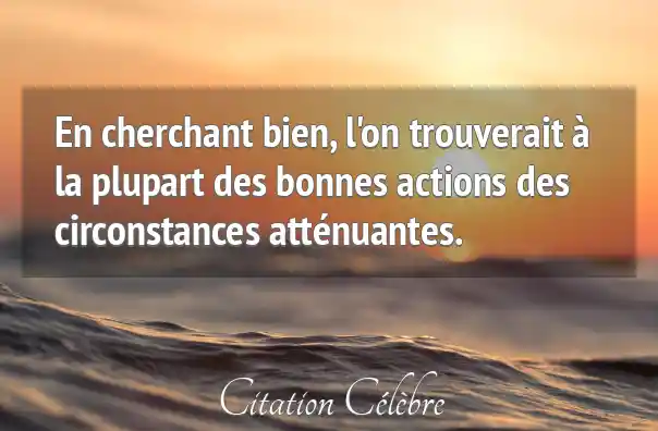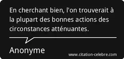 En cherchant bien, l'on trouverait à la plupart des bonnes actions des circonstances atténuantes.