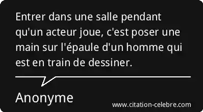 Entrer dans une salle pendant qu'un acteur joue, c'est poser une main sur l'épaule d'un homme qui est en train de dessiner.