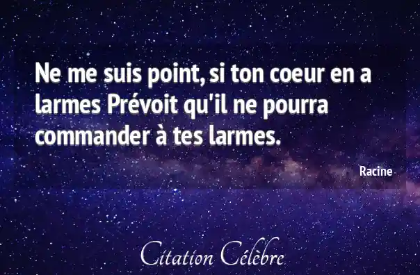 Ne me suis point, si ton coeur en a larmes Prévoit qu'il ne pourra commander à tes larmes.