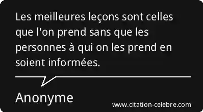 Les meilleures leçons sont celles que l'on prend sans que les personnes à qui on les prend en soient informées.