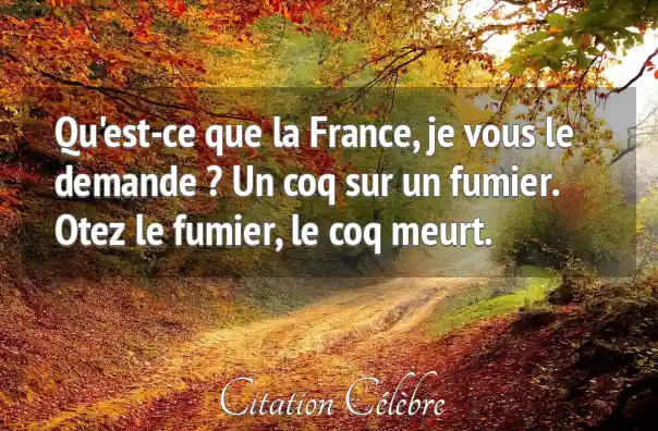 Qu'est-ce que la France, je vous le demande ? Un coq sur un fumier. Otez le fumier, le coq meurt.
