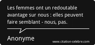 Les femmes ont un redoutable avantage sur nous : elles peuvent faire semblant - nous, pas.