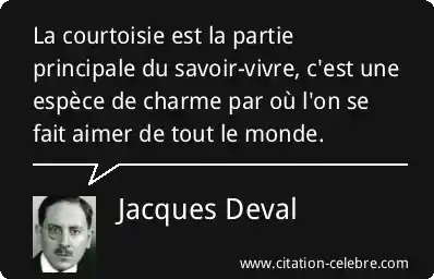 La courtoisie est la partie principale du savoir-vivre, c'est une espèce de charme par où l'on se fait aimer de tout le monde.