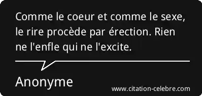 Comme le coeur et comme le sexe, le rire procède par érection. Rien ne l'enfle qui ne l'excite.