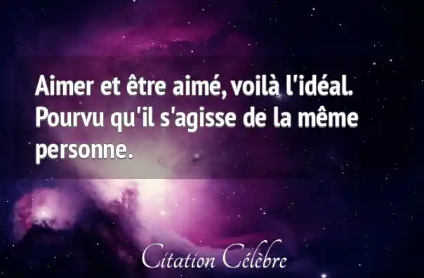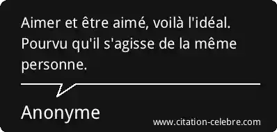 Aimer et être aimé, voilà l'idéal. Pourvu qu'il s'agisse de la même personne.