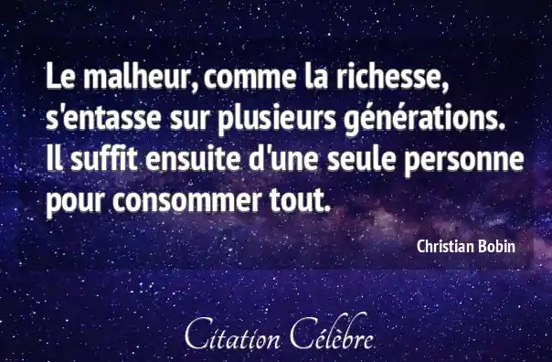 Le malheur, comme la richesse, s'entasse sur plusieurs générations. Il suffit ensuite d'une seule personne pour consommer tout.