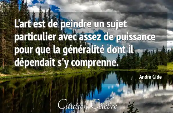 L'art est de peindre un sujet particulier avec assez de puissance pour que la généralité dont il dépendait s'y comprenne.