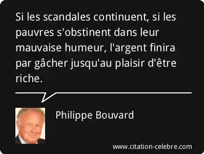 Si les scandales continuent, si les pauvres s'obstinent dans leur mauvaise humeur, l'argent finira par gâcher jusqu'au plaisir d'être riche.