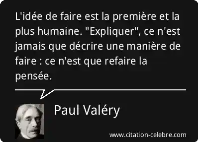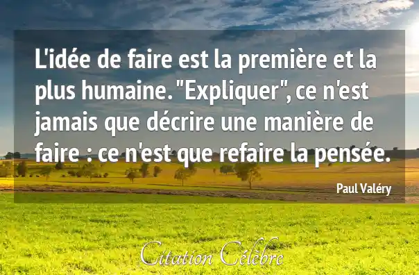 L'idée de faire est la première et la plus humaine. "Expliquer", ce n'est jamais que décrire une manière de faire : ce n'est que refaire la pensée.