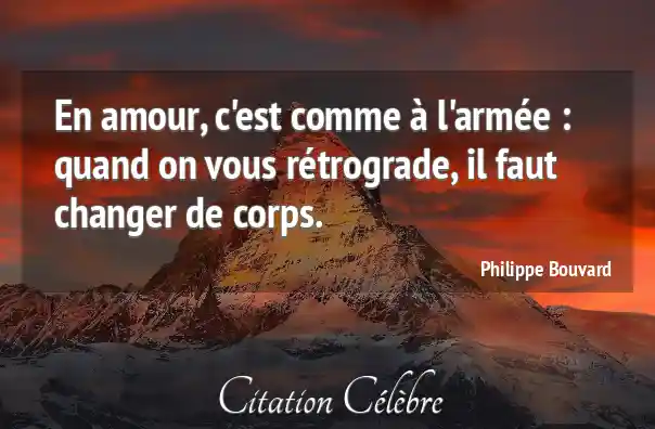 En amour, c'est comme à l'armée : quand on vous rétrograde, il faut changer de corps.