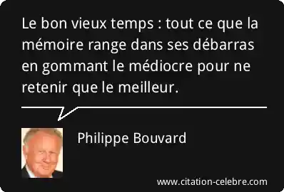 Le bon vieux temps : tout ce que la mémoire range dans ses débarras en gommant le médiocre pour ne retenir que le meilleur.