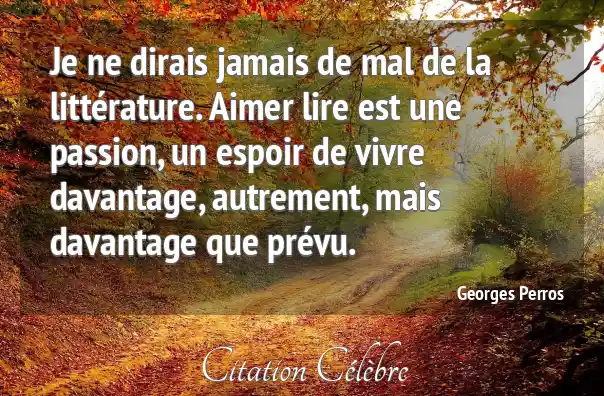 Je ne dirais jamais de mal de la littérature. Aimer lire est une passion, un espoir de vivre davantage, autrement, mais davantage que prévu.